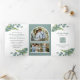 Rustic Eucalyptus Photo Collage QR Code Wedding Tri-Fold Invitation