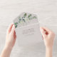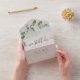 This vow renewal invitation with its watercolor eucalyptus leaves can be personalised with details of the event.