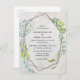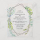 A soft watercolor background in a neutral colour complements a earthy geometrical frame filled with beautiful succulents and watercolor greenery of pretty shades of blue and green. Mix and match with other wedding accessories in this elegant wedding collection.