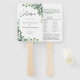 This elegant wedding program doubles as a hand fan. Decorated with rustic eucalyptus leaves in shades of sage green and dusky blue. Easily edit the information on the back using Zazzle's template tools. Rustic Eucalyptus Wedding Program Hand Fan.