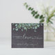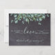 All we need is Love and an officiant! Request your officiant service for your wedding with these modern yet rustic eucalyptus greenery on grey chalkboard slate, elegant will you marry us cards. These eucalyptus officiant request feature elegant sage eucalyptus greenery leaves, delicate script on grey chalkboard slate. Customise these wedding officiant invitation with your personal message. These unique greenery will you marry us cards will make a lasting impression, your priest, pastor or officiant will surely say Yes! COPYRIGHT © 2020 Judy Burrows, Black Dog Art - All Rights Reserved. Rustic Eucalyptus Will You Marry Us Officiant Invitation