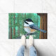 A lovely picturesque little Chickadee perched in amongst the evergreens.