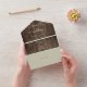 We absolutely loved how these wedding invitations turned out! We went with the standard paper stock, and it is plenty thick. One thing we probably would have changed is not doing the big white block on the front for the recipient address. Our invitations are a dark green. When we went to Staples to look at the options for labels, we saw some cute kraft stock colored ones that would have looked really cute on the dark green rather than using matte clear labels within the white block if that makes sense. They are still adorable though. I just fancied up my matte labels with a little leafy design and pretty font for the names so I feel like it helped it look more cohesive. Also, if you’re worried that they look pricey, make sure to put your quantity in because the price goes down significantly. We found this to be a super affordable, efficient and unique option that checked all of our boxes. When folded, they are the size of a little Google home screen see pictures. Perfect! Colors look exactly as we expected and the printing quality is clear and consistent.