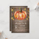 Rustic Fall Bridal Shower Invitation Card Pumpkin Floral with rustic wood background. For further customisation, please click the "Customise it" button and use our design tool to modify this template.