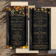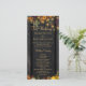 Beautiful rusty orange and dark burgundy autumn fall flowers and pumpkin borders with strings of golden twinkle lights over a dark brown barn wood background wedding ceremony program template. +++++++++++ + Personalise it with your your details! +++++++++++ Suitable for rustic country vintage chic summer garden autumn fall outdoor backyard or farmhouse weddings.
