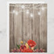 Pale barn wood panels with strings of mason jar lights and fall floral arrangement. Lovely for autumn crafting.
