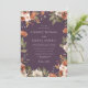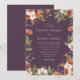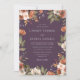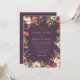 Earthy watercolor flowers and greenery decorate this elegant fall wedding invitation. This modern design features florals in rustic orange, purple and creams on an dark purple background. A beautiful autumn themed wedding invitation template for your special day.