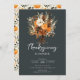 This modern rustic Thanksgiving dinner invitation features beautiful bouquet of fall flowers set on a dark green background. The invitation is simple and stylish, with the date, time, and location of the dinner in a tasteful font. The overall design is perfect for celebrating the Thanksgiving holiday with your loved ones.