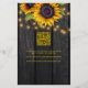 Fall in Love rustic barn wood stylish BUDGET affordable wedding invitation template on a dark brown barn wood background featuring big yellow gold sunflowers bouquets, strings of twinkle lights, and a faux gold typography script. +++++++++++++++ Easy to personalise with your details! +++++++++++++++++ The invitation is suitable for summer or autumn fall outdoor garden backyard rustic farmhouse country weddings, wows renewal, couple's parties, and anniversaries. ++++++++++++++++++++ PLEASE READ THIS BEFORE PURCHASING! This is a budget affordable wedding card printed on a paper sheet (each sheet has one card). ++++++ If you need envelopes, choose the ENVELOPE OPTION. +++ Double-check all the information and spelling of your text because you will receive exactly what you see - no one else will check anything before printing.
