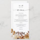 Add a touch of romance and warmth to your wedding day with the 'Rustic Fall Leaves Wedding Flat Menu.' Featuring a delicate design that captures the beauty of autumn, the blend of golden, red, and orange leaves harmonises perfectly with a rustic theme. This menu is sure to stand out at your wedding reception, offering each guest a unique experience while bringing a cosy, fall-inspired atmosphere to your celebration.