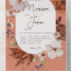 AVAILABLE WITH OR WITHOUT A QR CODE TO SCAN OR WITH OR WITHOUT DINNER SELECTION OPTIONS. This design features soft autumn wreath of tan, brown, rust, purple and cream on a soft grey beige background. Personalised All-In-One invitations are a unique combination of both a beautifully printed custom invitation with an easy to tear off perforated RSVP postcard. And they are so easy to use! You simply fold, then seal the back flap with the three included clear stickers, and mail. And when your guests receive your custom invite, they just tear the perforated RSVP Card off and drop it back in the mail to you!