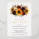 Sunflower floral Engagement Party Invitation featuring a rustic bouquet with watercolor painted sunflowers, red roses, purple flowers and greenery. Below is "engagement party" in real gold foil. This elegant invitation is great for a boho themed Engagement Party in the fall / autumn.