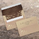 Boho-rustic wedding envelope featuring a faux wood grain interior liner with string lights and golden floral lace on the exterior. Perfectly matches fall or barn wedding themes, this envelope adds a warm, elegant finishing touch to your invitation suite. Customise with your return address for a cohesive and personalised presentation. Coordinates with the Rustic Wood String Lights Wedding Suite.