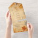 Celebrate your love story in the warm embrace of autumn with this elegant rustic autumn All-in-One wedding invitation. Order now to begin the journey of sharing your special day with family and friends in a way that captures the essence of the season and the timeless charm of rustic aesthetics. The All-in-One wedding invitations are both beautiful and practical by combining the wedding invitation with an easy to remove perforated RSVP postcard. They are also quick and easy to prepare for mailing. Simply address the invitation, fold the back flap and seal with the included clear stickers. Once your guests receive the pre-addressed invitation they simply tear off the perforated RSVP card and drop it in the mail.