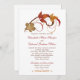 Rustic elegant wedding invitation design features a fall theme with autumn foliage and scrolling swirls. Rich autumn colour scheme includes shades of orange, copper, brown, red and gold.