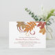 Elegant fall-themed wedding rehearsal dinner invitation design. Our "Falling Leaves" wedding stationery features saturated fall foliage and scrolling swirls. Colours include orange, copper, brown, red and gold.