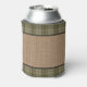 Rustic Family Cabin Moose Pine Green Plaid Burlap Can Cooler
