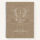 Custom vintage classic monogrammed family name and established year elegant chic rustic country farmhouse style dark beige burlap jute and white script recipes notebook journal. +++++++ A modern keepsake kitchen gift for weddings, anniversaries, housewarmings, Thanksgiving, Christmas, or any other occasion.
