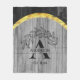 Family Name Rustic Farmhouse Wood Monogrammed design with faux gold glitter, floral elements, and elegant typography. Personalise with your family name, monogram initial, and date.