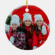 Rustic family name simple one photo red Christmas Ceramic Tree Decoration