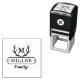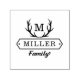 Rustic family stamp with serif monogram between antlers and family name in same font on a stylish badge with custom script "family" in decorative font