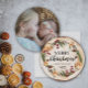 Celebrate the season with this Unique Rustic Family Photo Wood Merry Christmas Foliage Holiday Greeting Round Card. This distinctive and personalised card combines the timeless charm of rustic aesthetics with the warmth of a family photo, creating a round-shaped greeting that's both unique and memorable.
