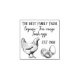 The stamp is decorated with beautiful and rustic images of a hen with her eggs next to her.