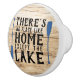 There's no place like home, except the lake! Two blue boat oars on the side with a faux wooden background.
