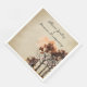 These rustic and romantic Autumn wedding napkins feature a vintage, parchment paper style background. A watercolor style image of Fall trees and a well is pictured in the bottom right, accented with fallen leaves. It's perfect for a cosy wedding in the woods.