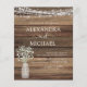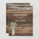 Rustic Farmhouse String Lights and Jar of Baby's Breath Wedding Invitations on Wood background - includes beautiful and elegant script typography with modern Country Farm House Sparkle for the special Wedding day celebration.