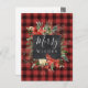 Rustic Farmhouse Black Red Check Plaid Christmas Postcard