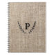 Rustic Farmhouse Burlap & Black Botanical Laurel Notebook