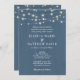 Rustic Farmhouse Dusty Blue Fairy Lights Wedding Invitation