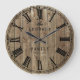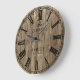 Rustic large clock, farmhouse style, with family name featuring vintage illustration of roman numerals face clock, over faux wood planks texture. Great for country decor, easily customize this wood like wall clock with your surname, established year and favorite colors (face clock and text).