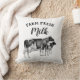 This decorative throw pillow features a vintage drawing of a mama cow and her calf in black and white over a white background. Vintage and modern styled typography reads, "Farm Fresh Milk." Perfect for the rustic farmhouse or for someone who loves vintage images...or farm inspired decor! The background colour on both the front and the back can be customised to any colour you'd like!