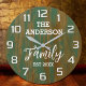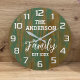 Add timeless farmhouse charm to your home with this rustic wall clock featuring a personalized family name and vintage green barn wood design. Perfect for your kitchen, living room, or entryway, this custom clock blends rustic style with functionality. A beautiful decorative piece and a thoughtful gift for weddings, housewarmings, or anniversaries.