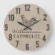 Rustic Farmhouse Rooster Burlap Family Name Large Clock
