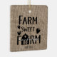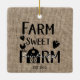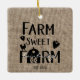 Rustic Farmhouse Style Christmas Ornament features country typography reading FARM SWEET FARM with hearts, barn and a rooster. Your family name and year your farm (home) was established is also featured. The perfect ornament for newlyweds, family, housewarming or anyone who loves the farmhouse style.