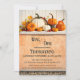 Rustic Thanksgiving dinner party invitation featuring pumpkins in an elegant farmhouse ambiance. Great for a country style celebration and leisurely atmosphere.