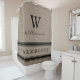 Rustic Farmhouse Ticking Stripe Burlap Monogram Shower Curtain