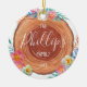 Rustic Farmhouse Wood Slice Personalised Family Ceramic Ornament. Personalise with your custom information on both front and back.