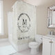 Rustic Farmhouse Wreath Monogram Shower Curtain- Add a touch of farmhouse to your home with our shower curtain, featuring your monogram, year your home was established surrounded by a country wreath. Custom shower curtain also features your family name. A unique shower curtain, customised by you!