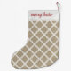 Rustic Faux Burlap and White Moroccan Quatrefoil Small Christmas Stocking