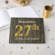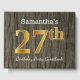 This guest book design features the ordinal number "27th" with a faux/imitation gold-like appearance. It also features a customised name, and a rustic faux wood look background. It could be used at a party for somebody celebrating their twenty seventh birthday. [~Z0000053]