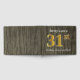 This guest book design features the ordinal number "31st" with a faux/imitation gold-like appearance. It also features a personalised name, and a rustic faux wood look background. It could be used at a party for somebody celebrating their thirty first birthday. [~Z0000053]