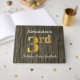 This guest book design features the ordinal number "3rd" with a faux gold-like appearance. It also features a custom name, and a rustic faux wood appearance background. It could be used at a party for somebody celebrating their third birthday. [~Z0000053]
