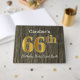 This guest book design features the ordinal number "66th" with a faux/imitation gold-like appearance. It also features a custom name, and a rustic faux wood appearance background. It could be used at a party for somebody celebrating their sixty sixth birthday. [~Z0000053]