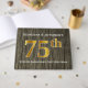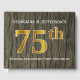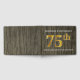 This guest book design features the ordinal number "75th" with a faux gold-like appearance. It also features customised names, and a rustic faux wood look background. It could be used at a party for a married couple celebrating their seventy fifth wedding anniversary.