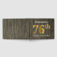 This guest book design features the ordinal number "76th" with a faux/imitation gold-like appearance. It also features a customised name, and a rustic faux wood look background. It could be used at a party for somebody celebrating their seventy sixth birthday. [~Z0000053]