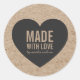 Rustic Faux Kraft and Grey Heart Made with Love Classic Round Sticker
